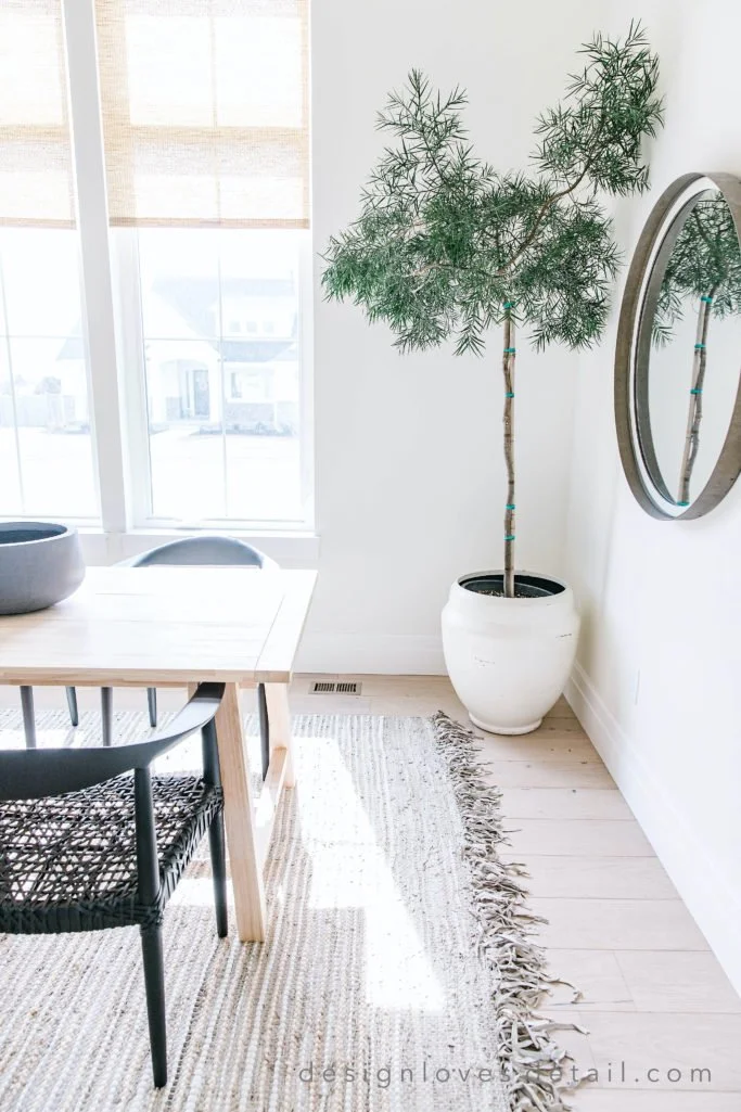 One of the most exciting finds for me is this beautiful table from The Home Depot website that's only $299! We were able to get it assembled it in less than 30 minutes and it's nice & solid! I love the simple design of it because it compliments just about any chair style out there! Plus, you can leave it as is or stain it any color you'd like. I loved the natural tone of it, so left it as is! It works perfectly with the colors in my home!