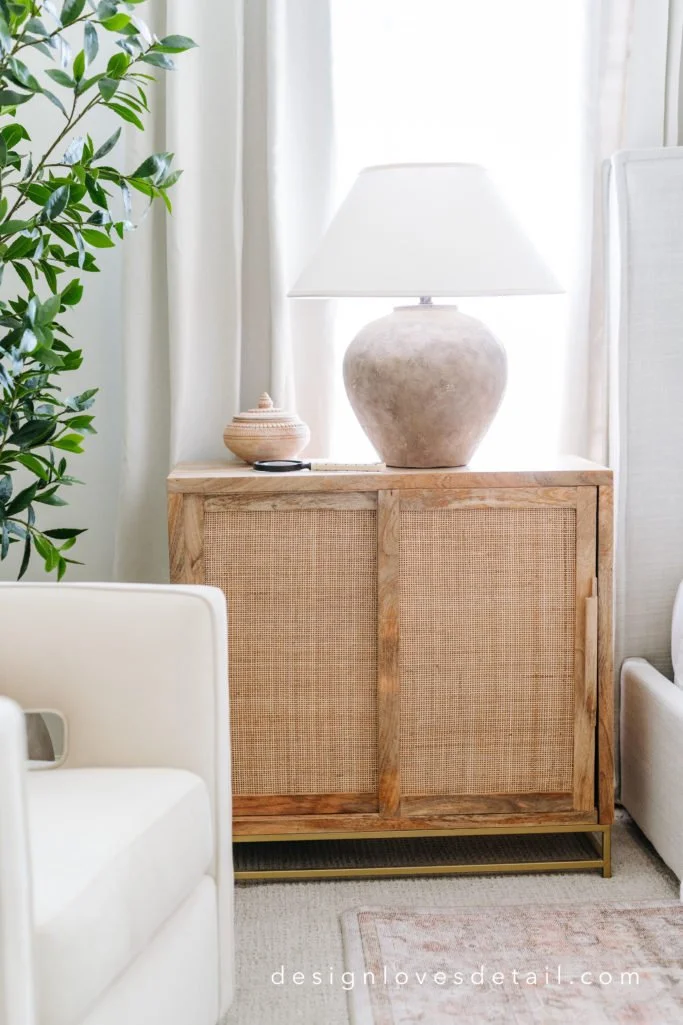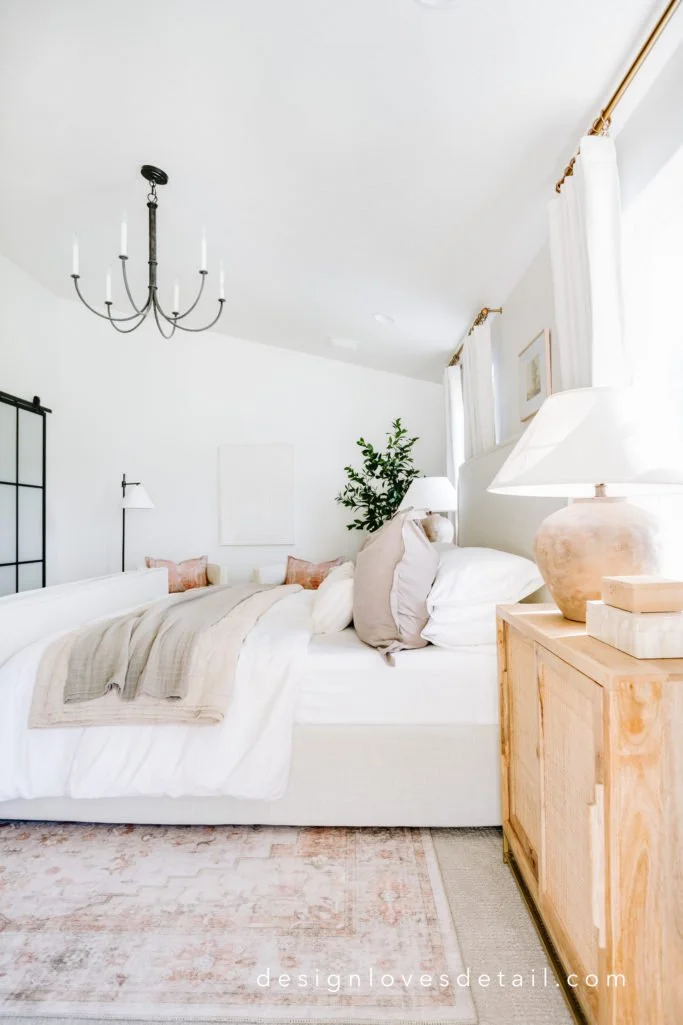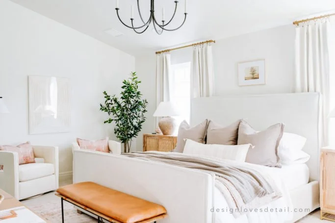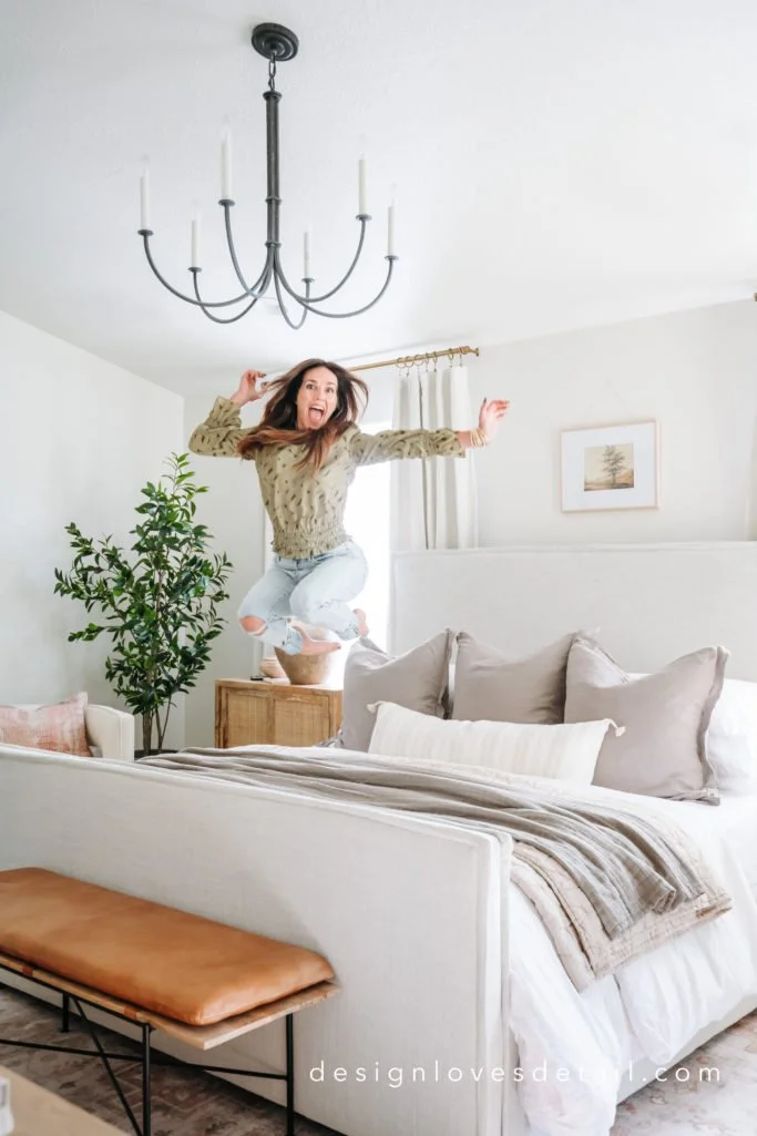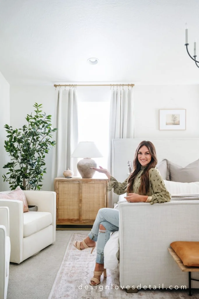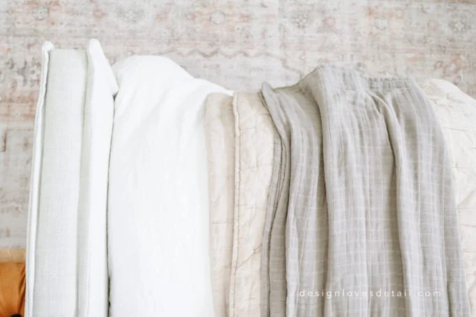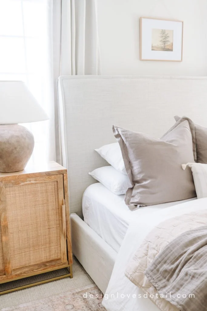 This is one of those room designs that just kind of spontaneously emerged... I had taken our old nightstands to use for the flip house we recently sold & planned to order the same ones again, but then they weren't available. So I ordered some cane detail ones I'd been loving, but I felt like they needed an upholstered bed with them (enter the bed that I had recently ordered for our new flip house!). When the bed for the new flip house arrived, I was so curious to see it that I talked Ben into setting it up, haha. Then one thing led to another & I had this amazing rug too in my garage that I had ordered because it was on amazing sale.... and honestly it all just came together so quickly & I LOVE it!! You can see more on our YouTube video that's coming this Wednesday or over on my IG stories today & I'll link the products for you below too. Also, tons of these items are on sale right now!!! The mattress is 30% off! Don't wait to get your room and/or guest ready for the holidays!
