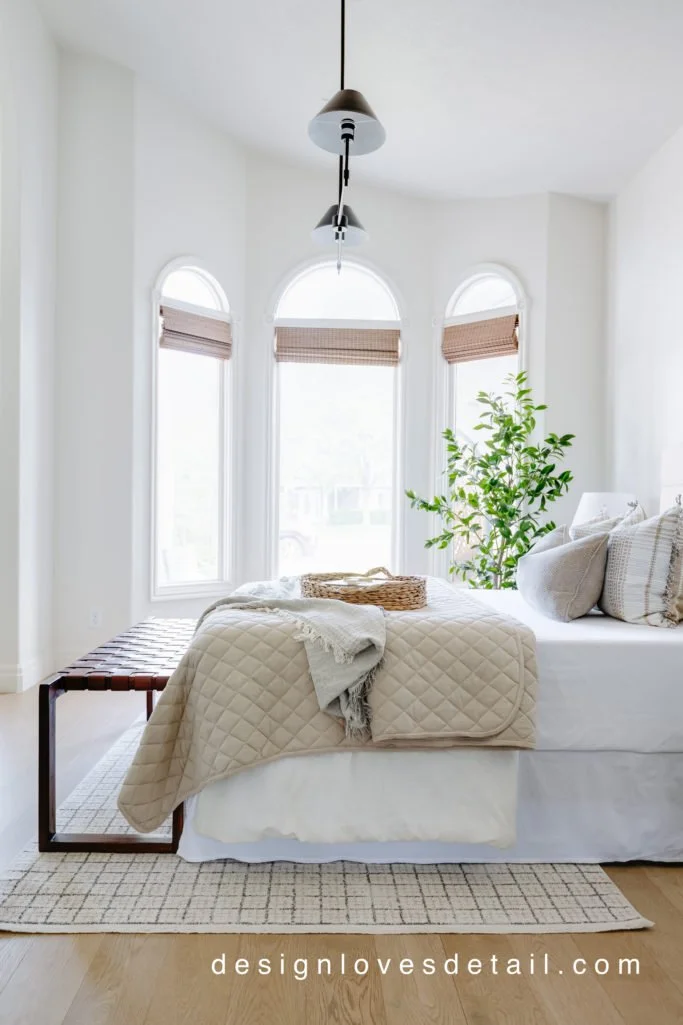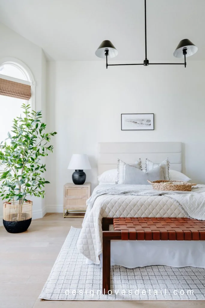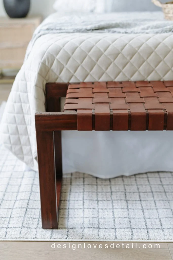 I even got the incredible leather bench from Walmart! It's such a good size- great for using at the end of the bed or in an entry or mudroom space! Not to mention the faux tree & basket that would look amazing anywhere. So in love with the new Dave + Jenny Marrs collection as well! The basket the tree is in, is from that line and it's such a good size + adds the perfect texture & detail to the room. The plaid rug is from the Miranda Lambert line with Walmart and can you believe it's only $75?!! Get these finds before they sell out- you just can't beat these deals! The entire space only cost about $1200!!!