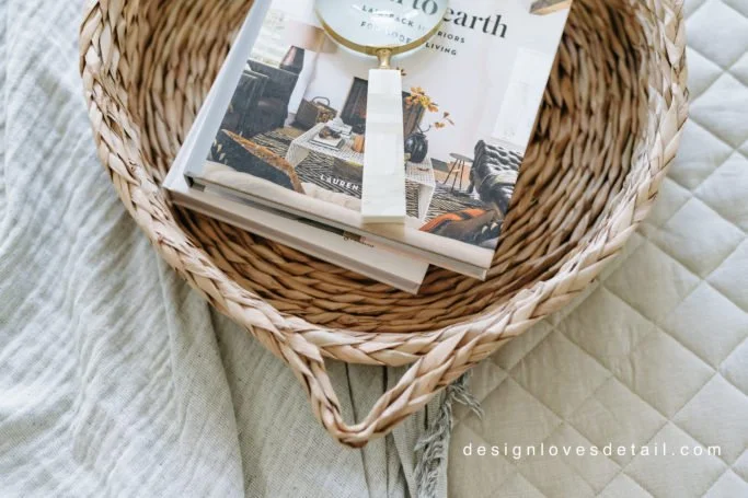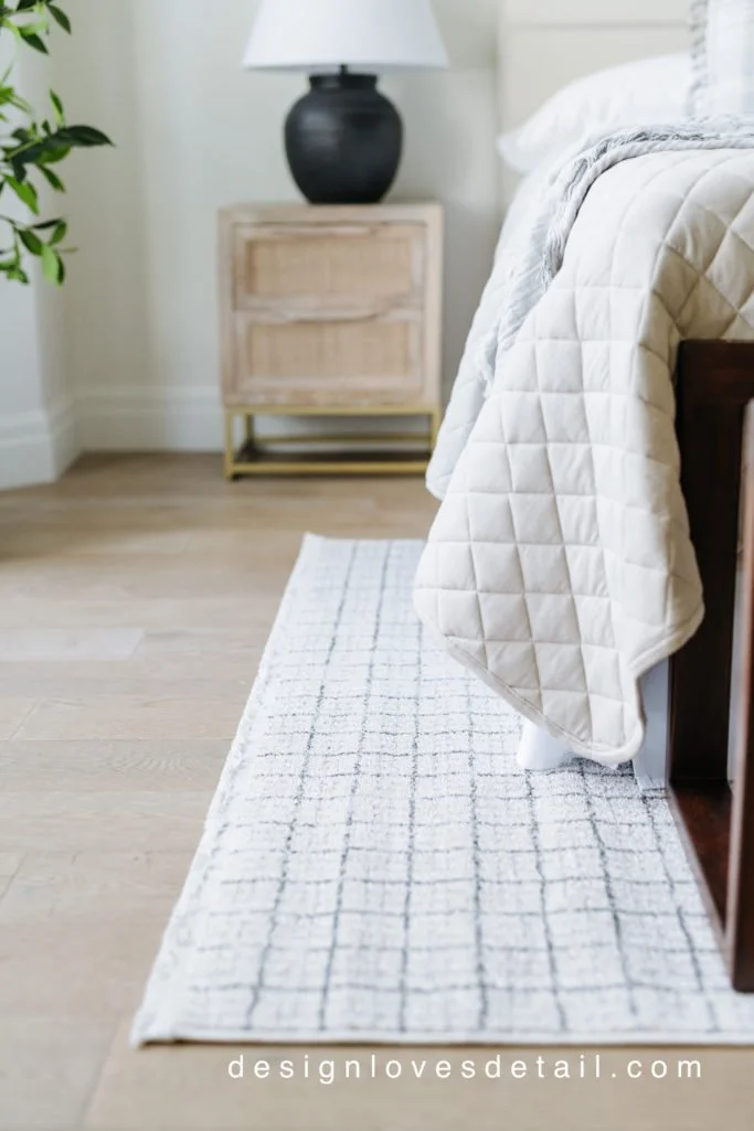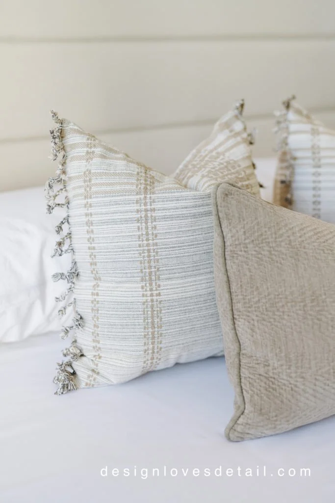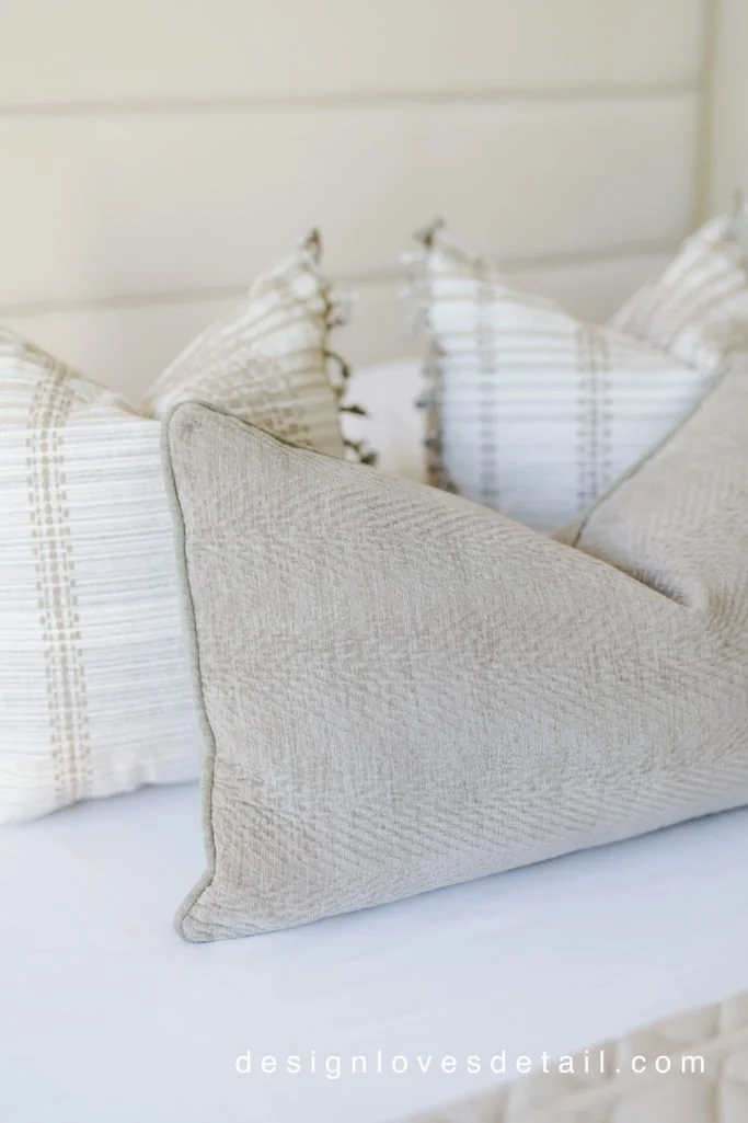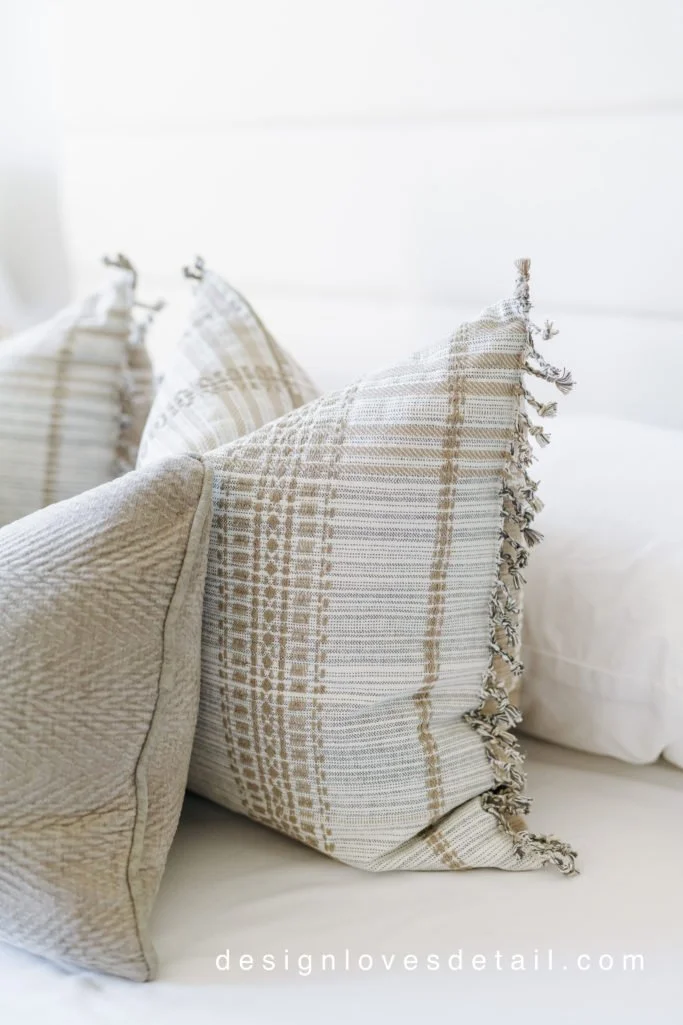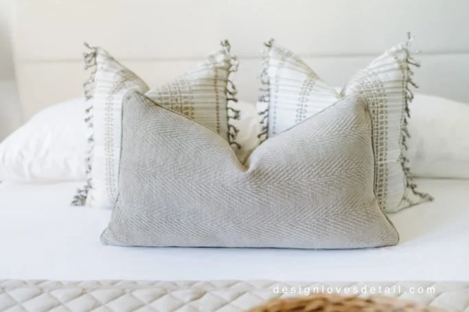 The quilted jersey comforter is from Gap Home as well. Walmart has tons of markdowns right now on home finds as well as clothing. I'll be sharing some fashion finds soon too. It's such a good time to buy with all the rollback savings! How about the cute textured pillows?! They're another designer look item that's soooo affordable! They back side of them is tan with cream & blue/grey tones, so they're extra versatile too.