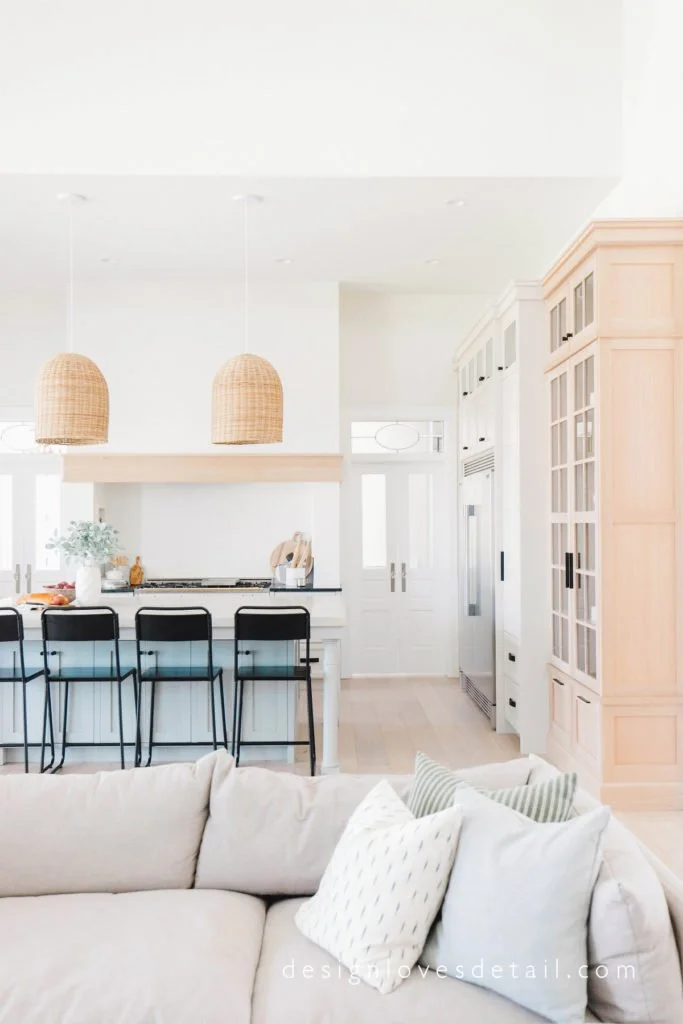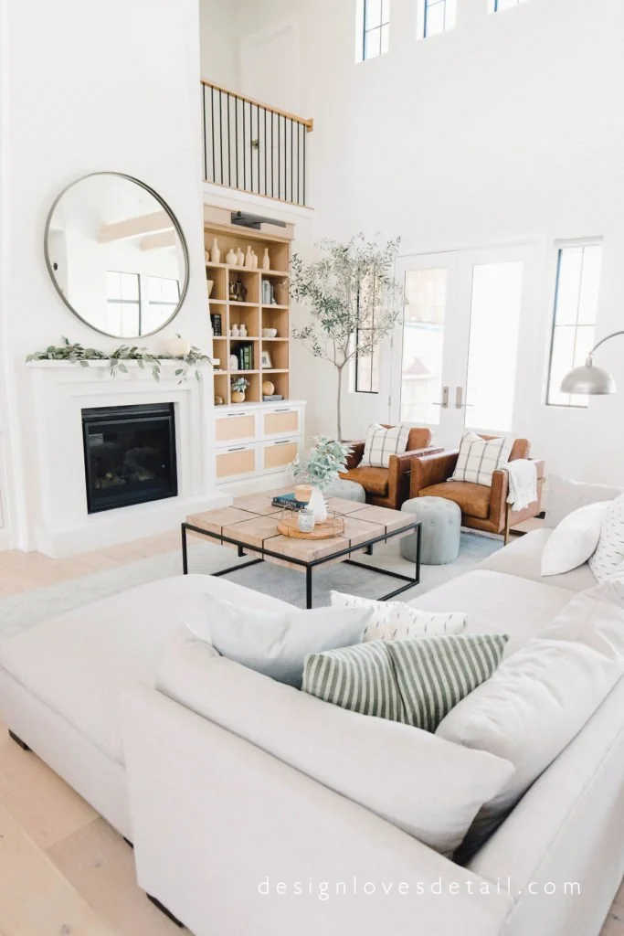 Design Loves Detail Fall Home Tour. Love this family room with warm whites and natural wood tones!