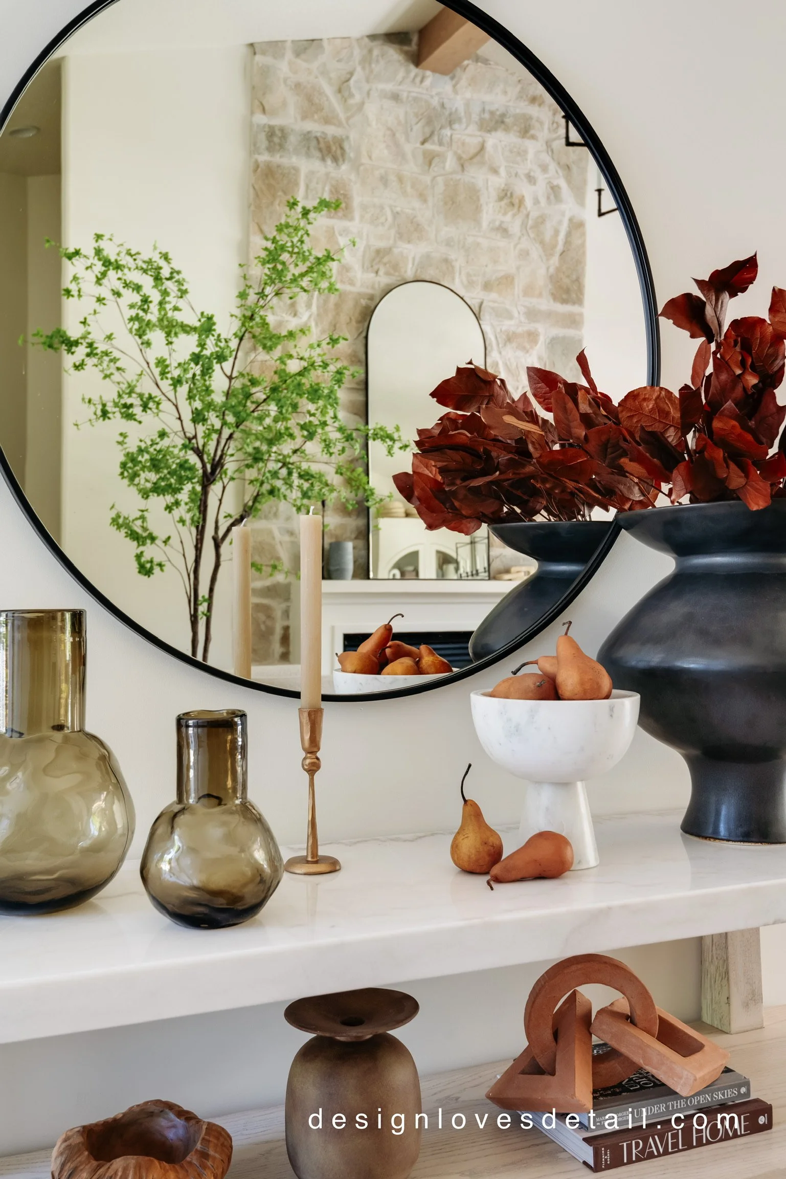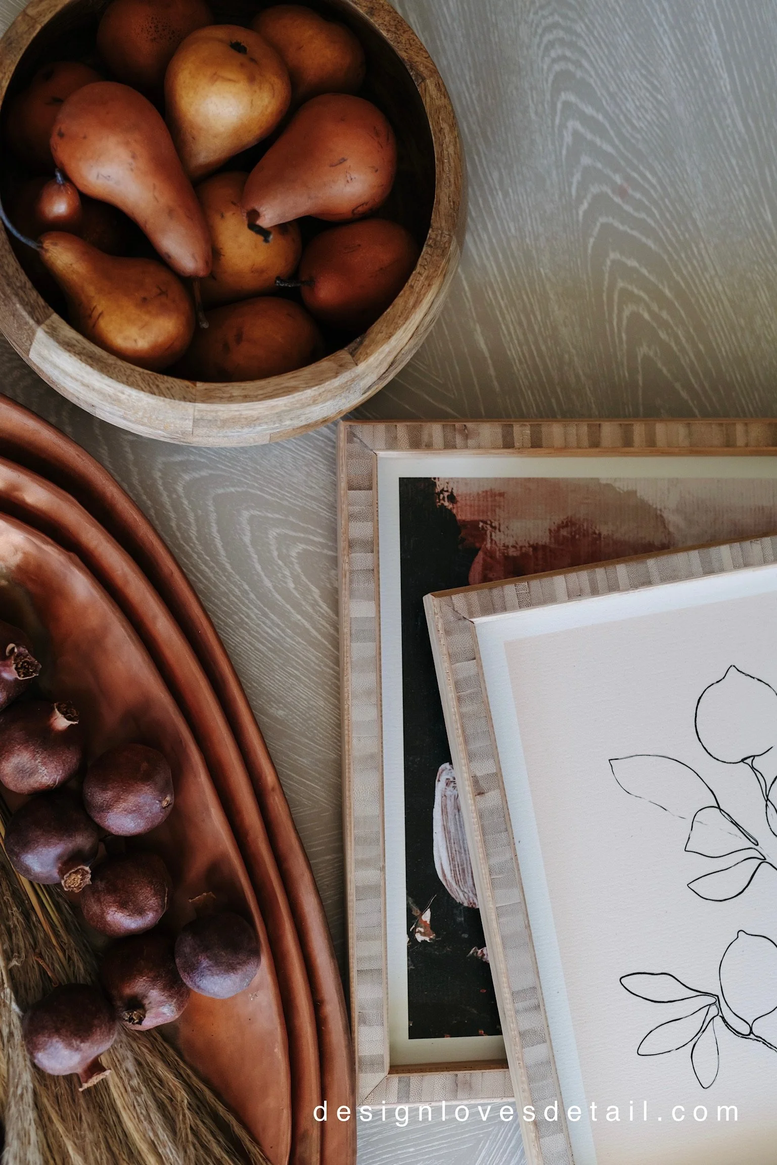 You know I love that seasonal produce!! Get a farmers market feel with Bosc pears, fresh figs or even dried pomegranates. I always love to use organic elements to keep the design practical & approachable. Plus they just bring in the most stunning warm, autumn hues!