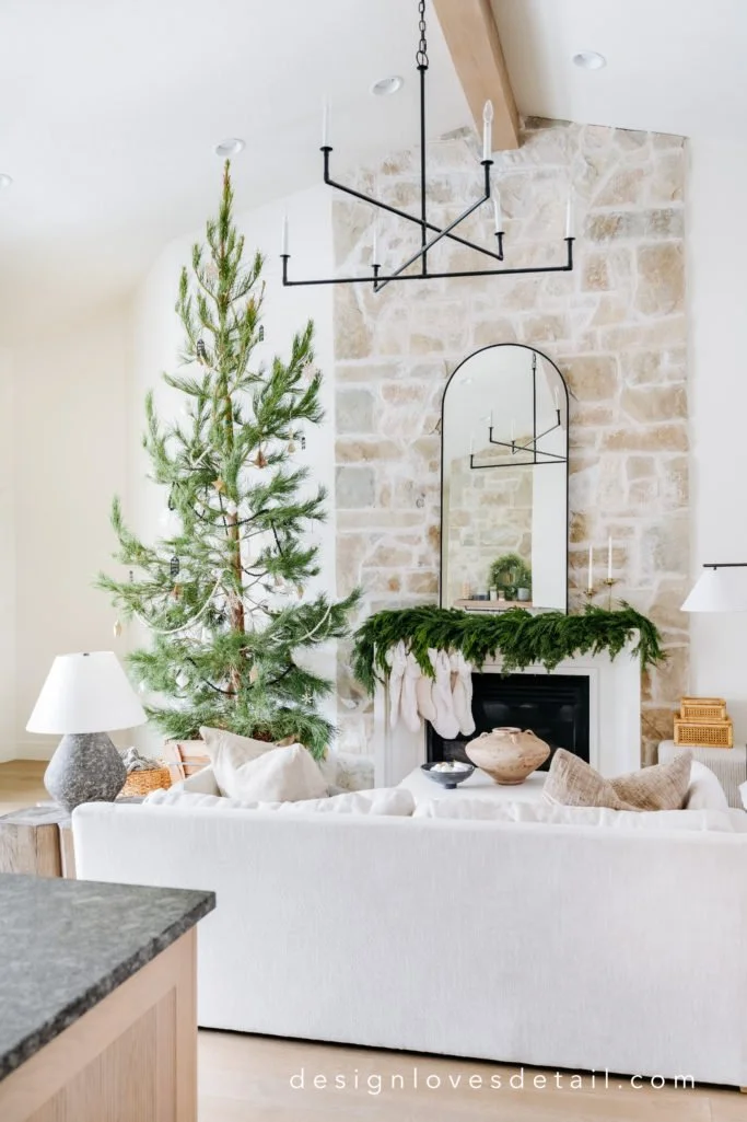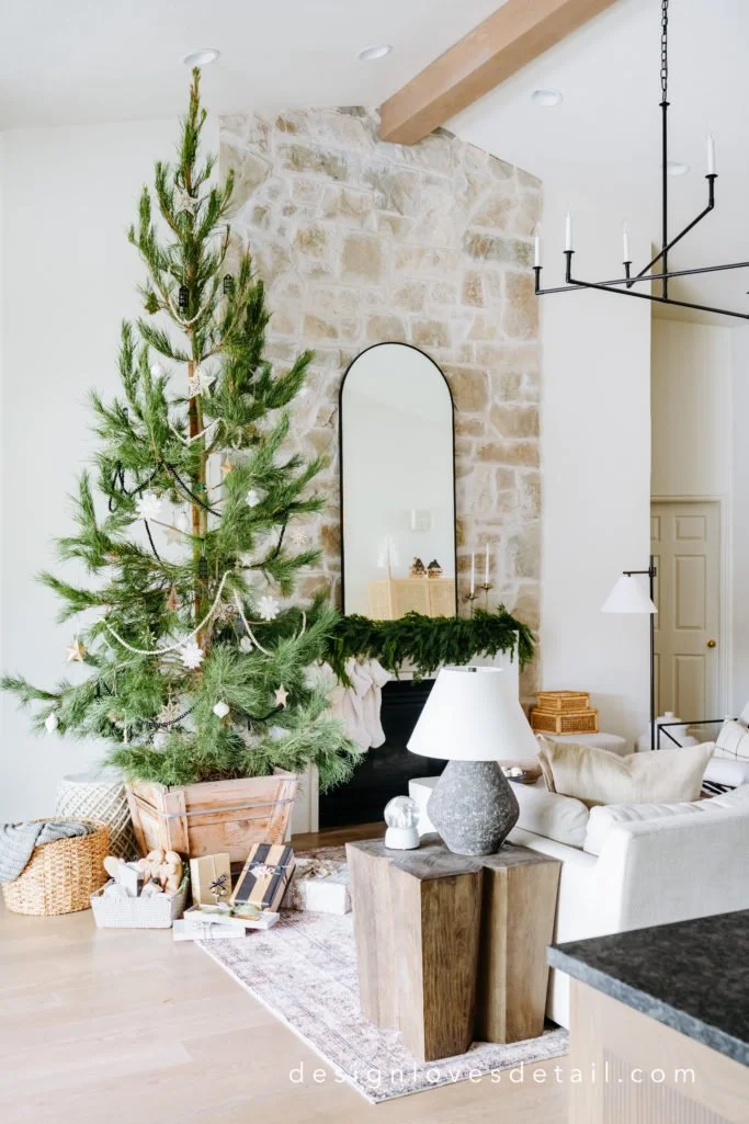 Happy Thanksgiving, my friends! So thankful to you all for your support-- you make it possible for our family business which allows me to do something I love & share it with you!! Here's a look inside our home this holiday season. I kept things simple, organic & festive this year with a real pine tree (a Mondell Pine) which I picked up from a local nursery. I love the wood crate & the natural feel it brings to the space. We hope to plant it in our yard after Christmas! Someone gave me the tip of having a humidifier near the tree to keep some moisture in the air for it-- great idea!!