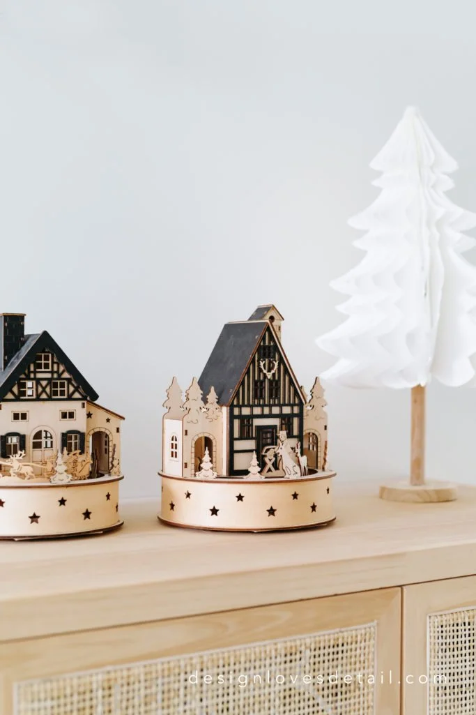 For our living room space I added lots of pops of greenery & a green throw to tie things together. The tree is trimmed in natural wood ornaments, black & white accents with a handcrafted feel. I love nostalgic Christmas accents with a Scandinavian style! I'll be sharing a look at our holiday kitchen in part 2 and I also have a fun surprise room makeover coming this weekend, so don't miss it! You can see a full walkthrough of our holiday home at the video below. Plus shop my holiday faves at the links below! Wishing you all a wonderful weekend with the ones you love! XOXO.