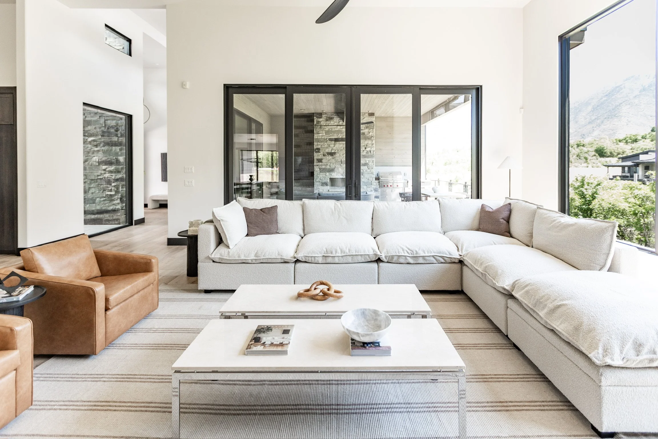 Set in the stunning mountains of Utah, this modern model home was so fun to furnish & decorate! I wanted to give you a look at how everything turned out— as well as an up close look at a few favorite furniture pieces!