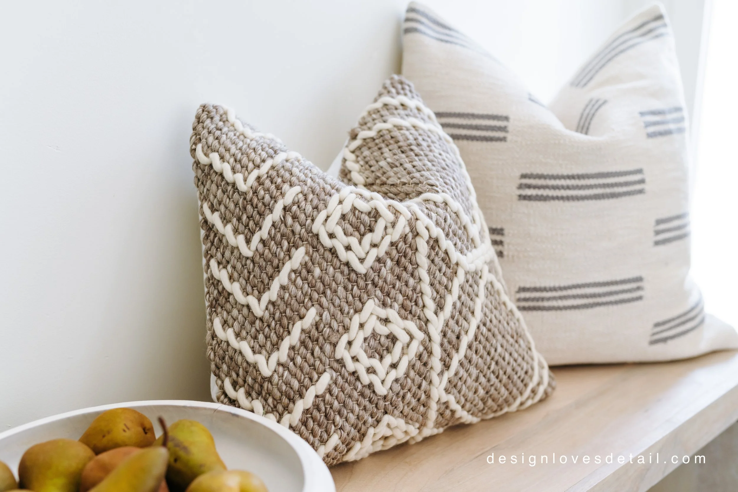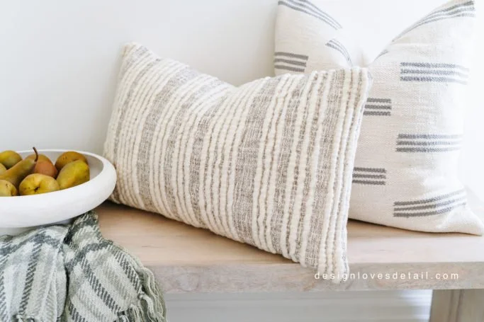 ADD TEXTURE! The Joss & Main Fall Edit is packed with fantastic textiles that bring in beautiful textures to any space! Texture adds a richness to a design that is much like a Fall wardrobe-- the Fall clothing has more texture/interest, which feels cozy! Adding texture is especially important when designing with neutrals. This rug is a perfect example-- though it's a tone on tone design, the texture of it makes it interesting & luxurious! The quality & detail is SO beautiful. I also adore the pillows I added to my entry makeover-- I've linked even more below to help you find the perfect combo for your home!!