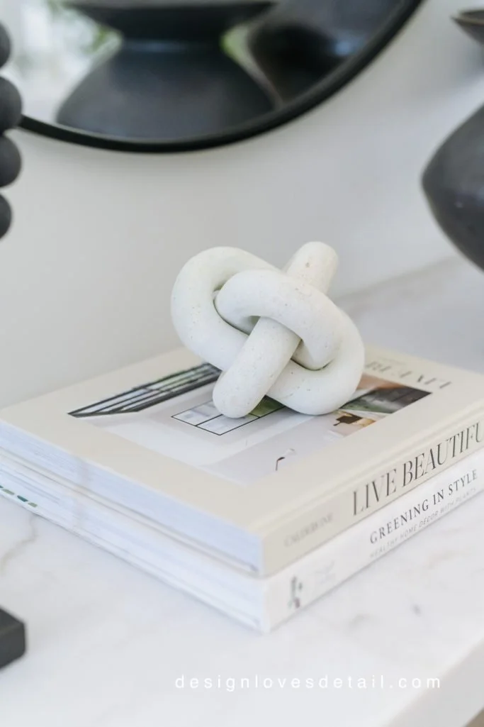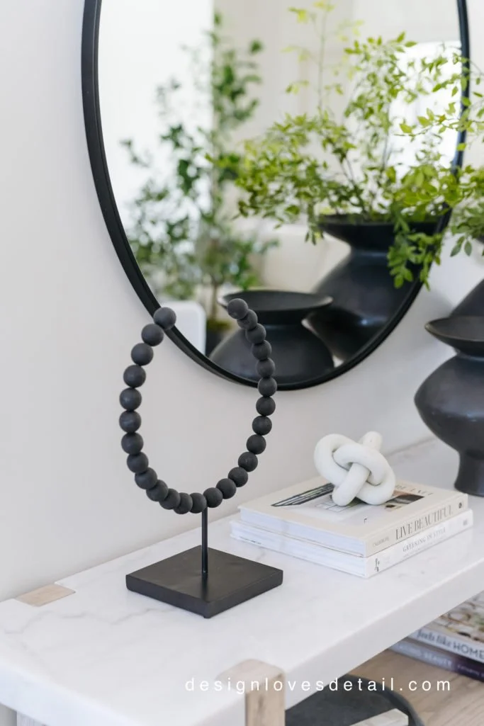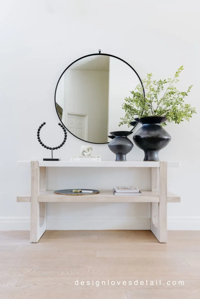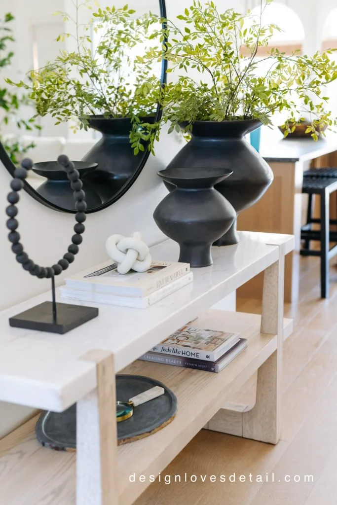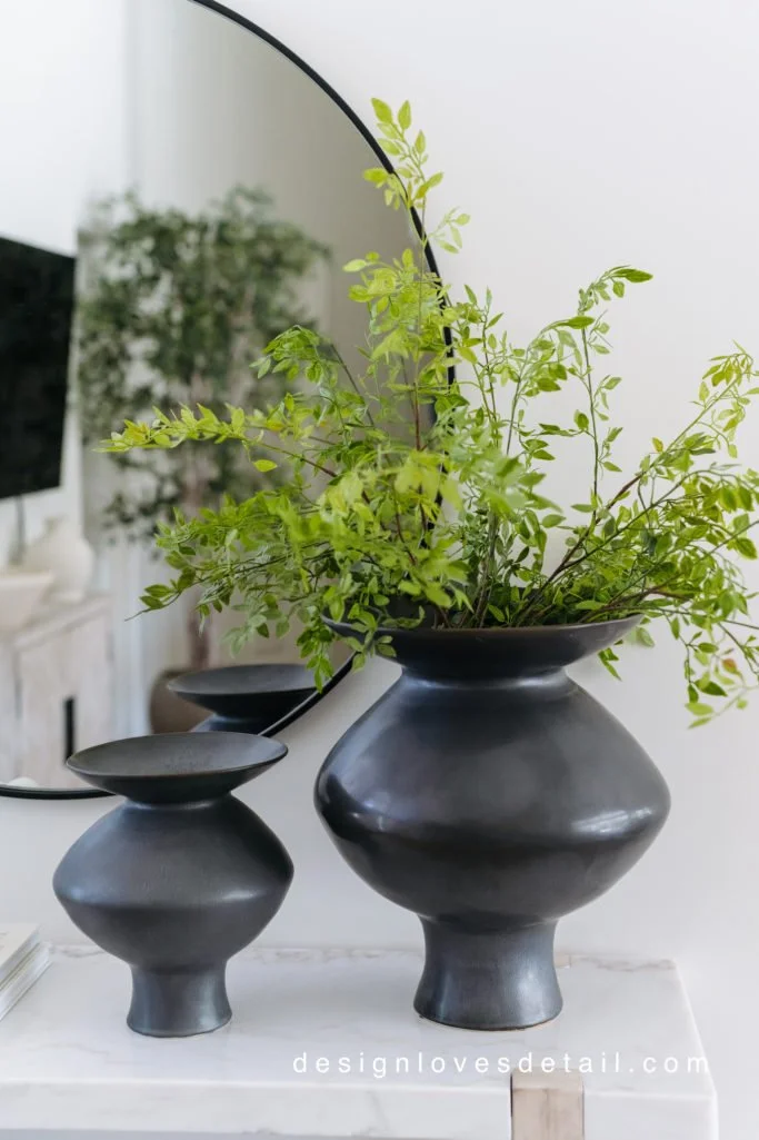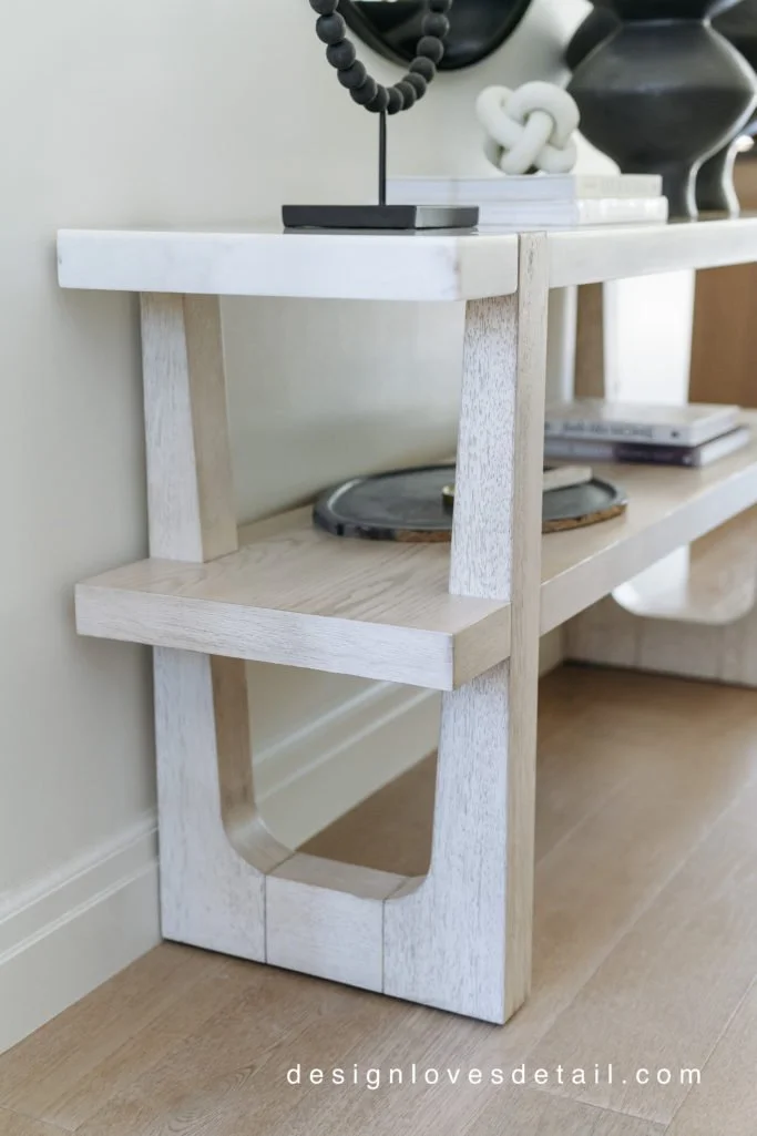 I am in love with this console!! It had been on my wishlist forever & I'm so glad I went for it. The quality is excellent and the mix of marble + wood is just stunning!!! Plus the lower shelf makes it so unique & fun to style. The vases are another favorite of mine. I had the smaller one already & have been loving it so much that I decided to get the large one and it's perfect-- so huge!!! You can use any stems/branches in it to suit the season.