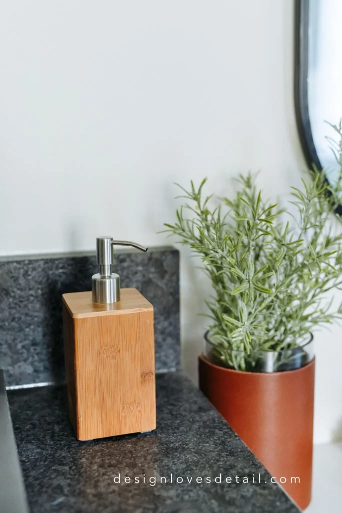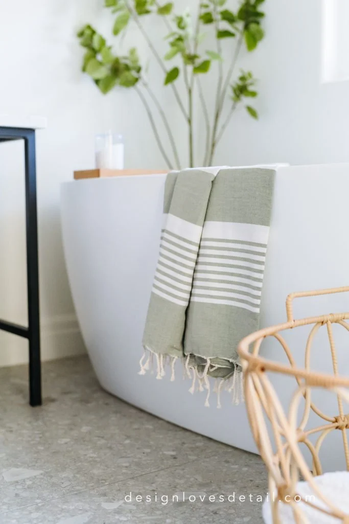 The faux tree from Walmart.com is a great price and added the perfect touch of nature to the corner near the bathtub. I love adding a little live or faux greenery for a natural, organic vibe that feels inviting + restorative.