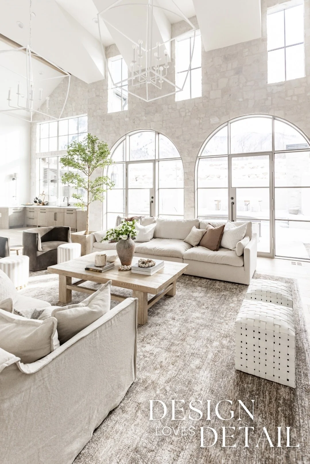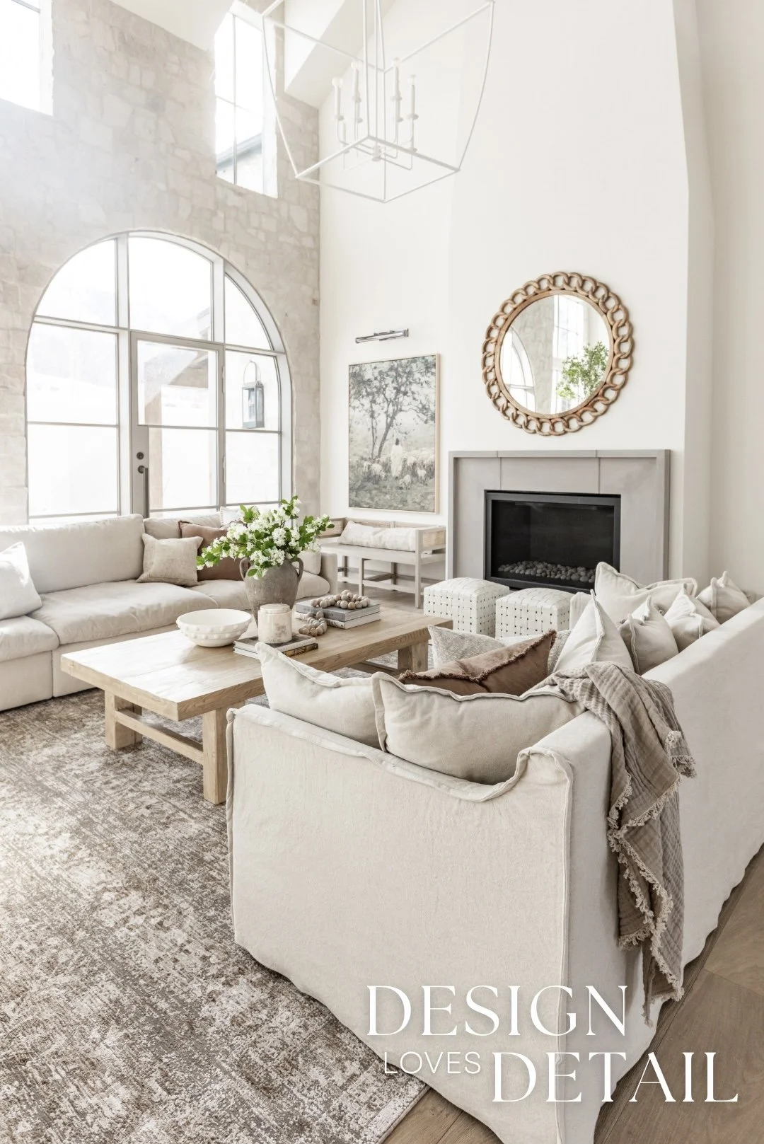 Another thing I will splurge on is quality faux trees & this one in our living room checks all the boxes! It looks so realistic. I think that cheap faux plants are usually just that— cheap! I’m so glad I went with this amazing faux black olive to make a statement in our living room. It comes in a variety of heights which was awesome for the high ceilings in this room. To help balance out the splurge on the tree, I opted for a cost-friendly rug! I’ve found the prices of rugs vary greatly, but that you can get a great looking one that’s durable too, without spending the big bucks, so I definitely recommend rugs as a way to SAVE! This one I used in our living room is another of my fave Wayfair buys. It’s got beautiful neutral tones, subtle texture and that perfect green undertone I adore. Plus it comes in huge sizes too— this one is nearly 12x15!