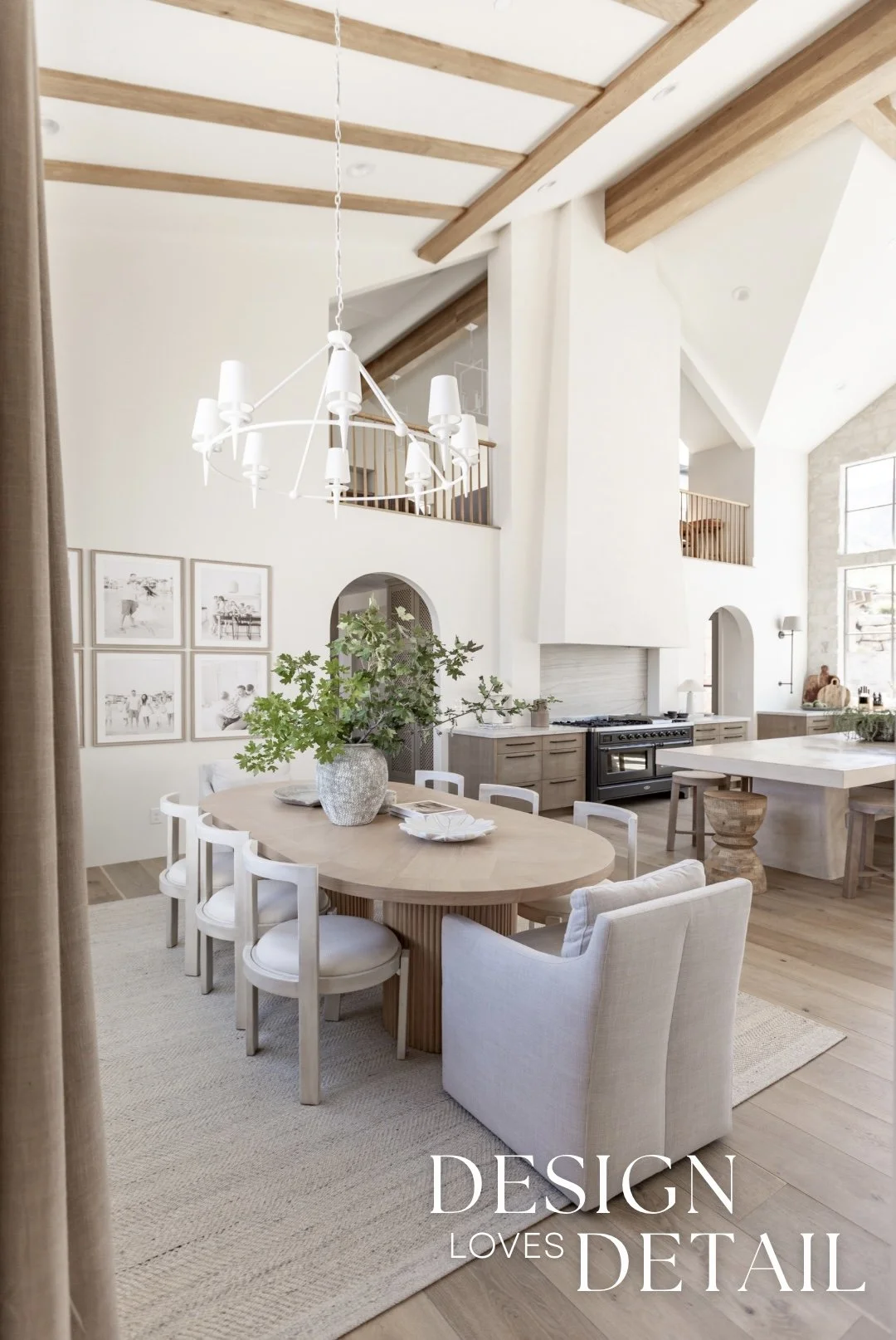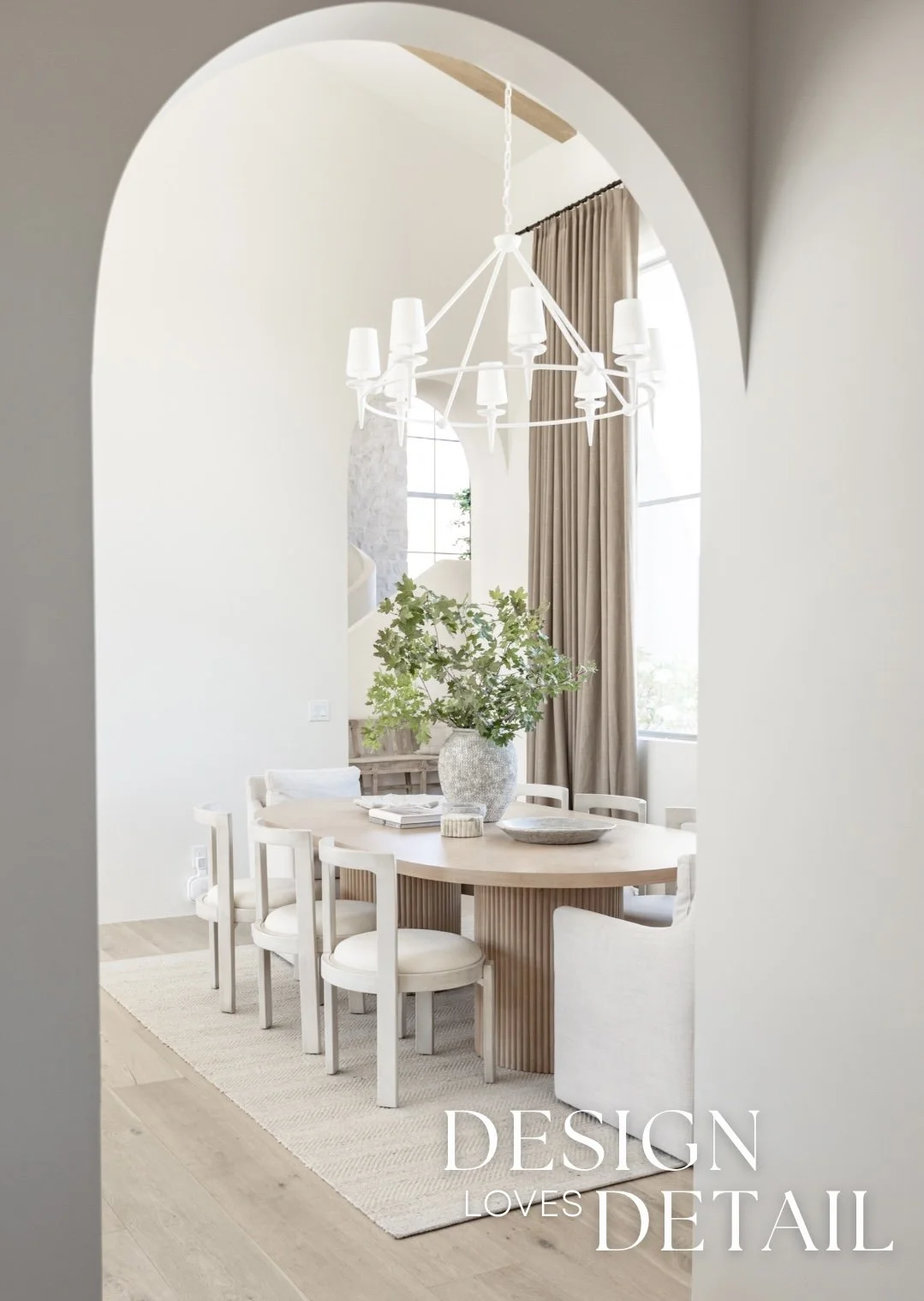 For our dining room I knew I wanted to create an organic, minimal space with texture and tone-on-tone style! I was able to find these awesome upholstered end chairs to level up the design and would you believe they’re a save item?! They’re on casters for easy movement and I have been really happy with the quality + fabric as well. I paired those with the affordable, but designer look cream side chairs— love their contrast against the wood table! And you probably guessed it… this gorgeous dining table was my splurge for the space!