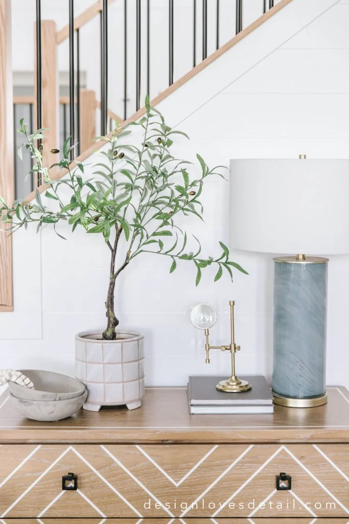 Today I'm sharing how I added simple Spring touches to our family room! For me the warmer months are all about the greenery. Live & faux plants add a feeling of freshness that I can't get enough of! My new large tree is a real one, it's a "Ferm Podocarpus". I also moved some furniture/decor pieces around to switch things up. I moved my leather chairs into my office & these grey canvas sling chairs into the family room!