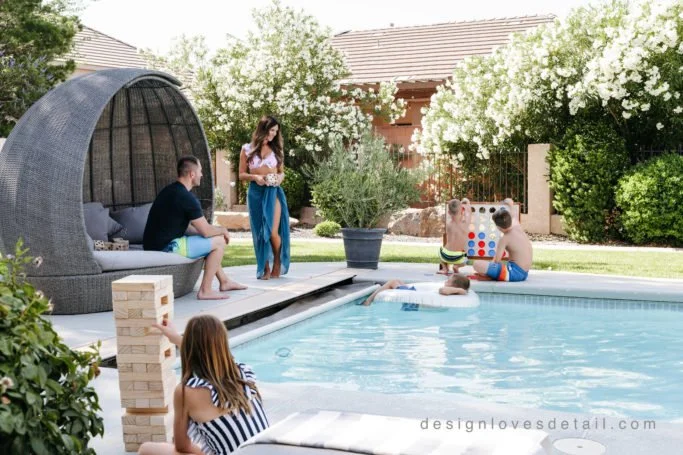 Have you checked out Walmart's selection for outdoor fun?!! We teamed up with them to share some favorites. They have tons of backyard games, pool floats, patio finds and more! I even got all of our family swimsuits from Walmart too. They've got everything for you need for outdoor fun & summer entertaining! We are loving the oversized yard dice for Yahtzee, Connect Four, Tumbling Tower & all the fun pool toys too! I've linked my faves below for easy shopping!!