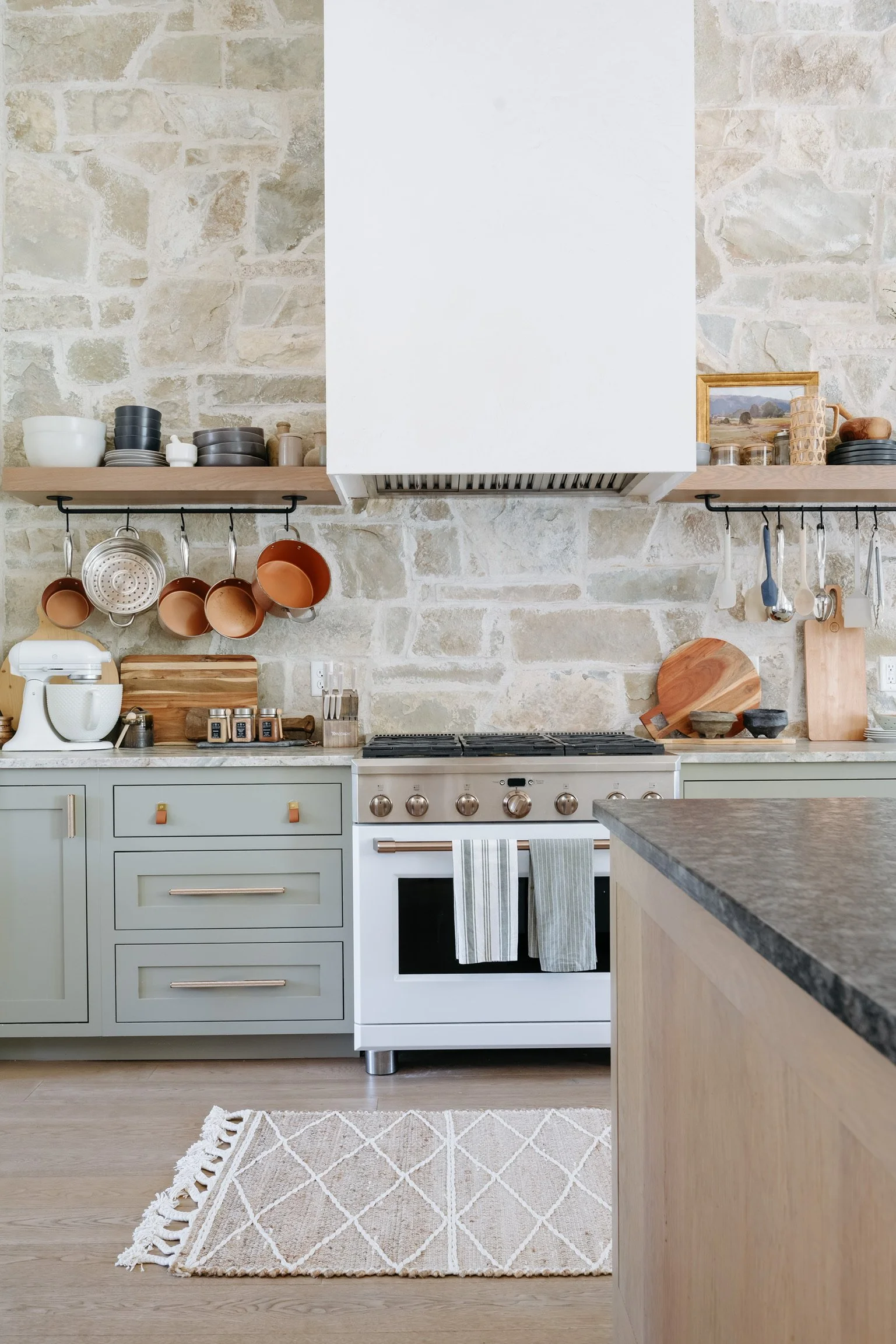 Spruce up that kitchen with some hanging racks for your pans and utensils! These can mount under a shelf or directly to the wall. It's a game-changer for both organization and style— all while keeping your budget intact. Plus it makes them easily accessible and opens up drawer space for those less pretty kitchen accessories!